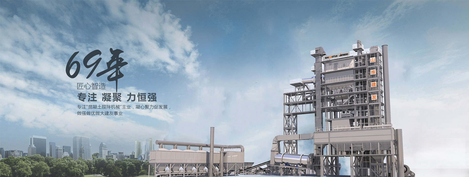 山推建友機械股份有限公司主營混凝土攪拌站、瀝青攪拌站、穩(wěn)定土拌合站、干混砂漿站、制砂站、破碎線、混凝土攪拌運輸車、圾處理設備及拖泵、砂石分離機等各類攪拌機械。